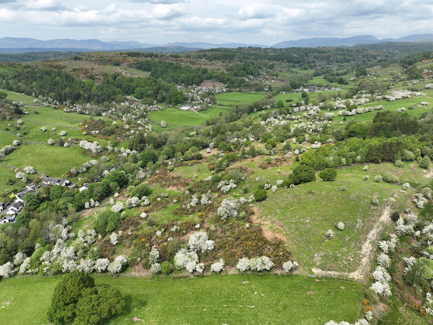 To confirm that the space required for the planting will be fully available, and spot whether any further work is needed this summer, I have once again asked Andy from Shepherd Aerial https://www.shepherdaerial.com/?lightbox=dataItem-kn0qc5ia1to take aerial photographs of Bel's Wood. These images will also act as a valuable record of progress over time. From November the land will look like a sea of plastic guards for the next couple of years so it is great to have this 'before' record. The photographs were taken before the bracken returned in late April then Andy came back over one weekend in late May and took some wonderful videos and stills when the hawthorn was in full bloom. It has taken me a while to post these so it feels a bit out of sequence with my more recent blogs but better late than never!